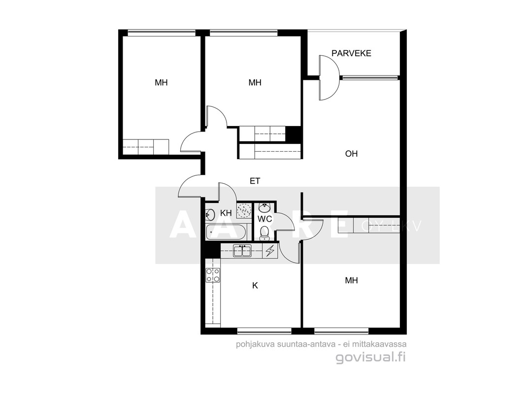 | Huoneistoselitelmä | 4h+k+kph+wc+parveke |