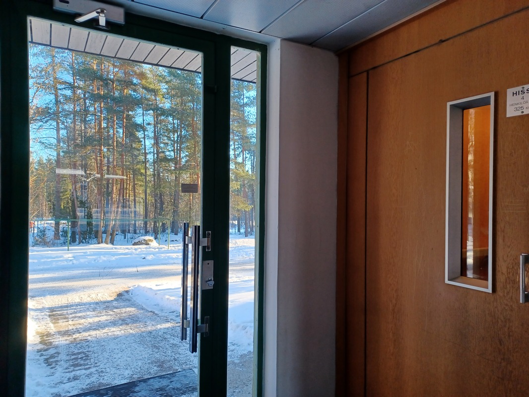 | Kunto | Sisäpinnoissa hieman kulumaa (lattia, ovilistat, seinä). |